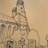 Brunnenfigur Wiener Platz. Original aus München Skizzenbuch (Seite132). 29,7 x 42 cm.